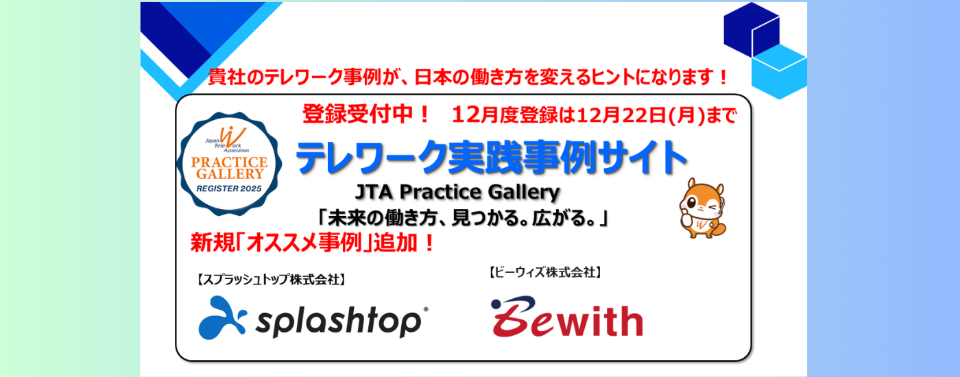 【12月 新規事例のご紹介と募集】貴社のテレワーク事例が、日本の働き方を変えるヒントになります!