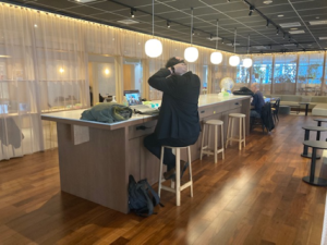 働き方の改革は、物理的なオフィスにも及んだ。東京都千代田区神保町にある同社の本社22、23階に広がるのは、1.5フロアを融合させたABW(Activity Based Working)の実験場だ。 カフェのような喧騒の中で思考を巡らせる社員もいれば、照明を落とした静寂のエリアで一点に集中する社員もいる。音楽が流れるリラックスした空間も、陽の光が差し込む窓際も、すべては社員の「気分」と「タスク」に委ねられている。「自分の席」という執着を捨て去ったとき、組織に有機的な動きが現れた。目的なく集まる場所ではなく、最高のパフォーマンスを発揮するために「選ばれる場所」へ。オフィスは、アクティブな働き方の起点へと生まれ変わった。