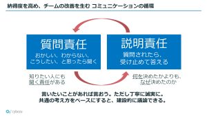 同社が掲げる「質問責任」は、⼀⾒すると⾮常にストイックな⽂化です。しかし、これが機能する背景には、 ⽇々の「ザツダン」によって耕された、圧倒的な⼼理的安全性の⼟壌があります。