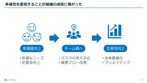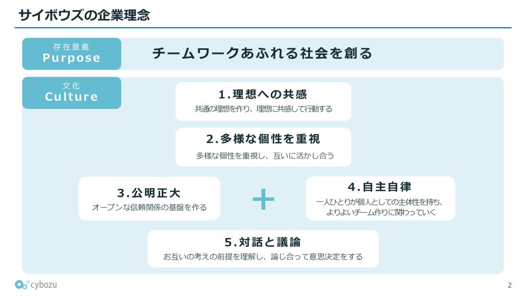 例えば、⽉に⼀度開催される社⻑との全社員対話イベントでは、⾃社製品である「キントーン(kintone)」を利用して「今の社⻑の発⾔、 現場の感覚だと違和感があります」といった、忖度(そんたく)なしの率直な意⾒が実況スレッドに次々と流れます。これに対し、社⻑はその場で即座に「なぜそう話したのか」という背景を説明し尽くす「説明責任」を果たします。