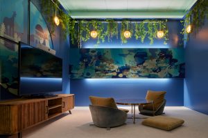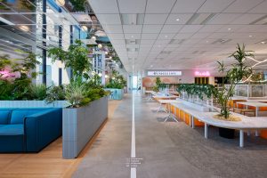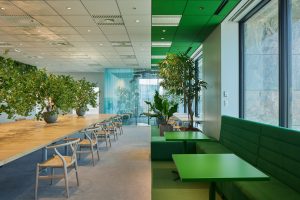 特徴としては、部署ごとの間仕切りを作らないことでコミュニケーションを生む工夫をしていたり、形を変えてイベントができるスペース、部活動などで、みんなでご飯を作って食べられるキッチンスペースなどがあります。また、出社している人の中でも「集中して業務をしたい人」と「リアルでワイワイとミーティングをしたい人」がいるので、エリア分けをしています。